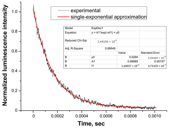For verification of the first hypothesis, we measured the luminescence decay kinetics for all crystals. The luminescence was monitored at a wavelength of 880 nm. The typical view of the measured kinetics is presented in Figure 14.