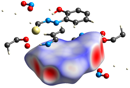 - Spackman, P.R.; Turner, M.J.; McKinnon, J.J.; Wolff, S.K.; Grimwood, D.J.; Jayatilaka, D.; Spackman, M.A. CrystalExplorer: A program for Hirshfeld surface analysis, visualization and quantitative analysis of molecular crystals. J. Appl. Crystallogr. 2021, 54, 1006–1011. [Google Scholar] [CrossRef] [PubMed]