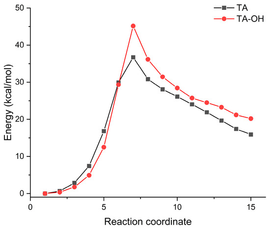 Minimum energy pathway (MEP) at neutral pH of TA-OH and TA.