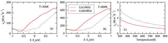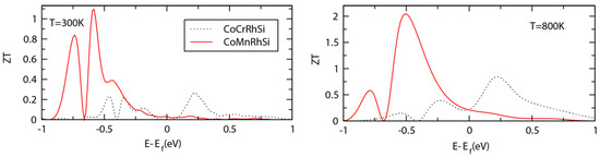- Haleoot, R.; Hamad, B. Thermodynamic and thermoelectric properties of CoFeYGe (Y = Ti, Cr) quaternary Heusler alloys: First principle calculations. J. Phys. Condens. Matter 2019, 32, 075402. [Google Scholar] [CrossRef] [PubMed]