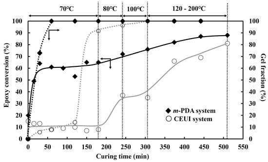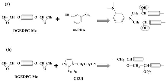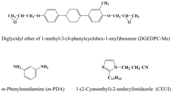 3.1. Curing Reaction of the DGEDPC-Me/m-PDA and CEUI Systems