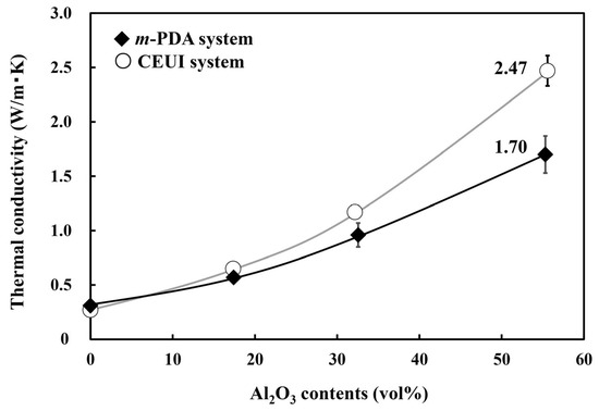 3.5. Thermal Conductivity of the DGEDPC-Me/m-PDA and CEUI/Al2O3 Composites