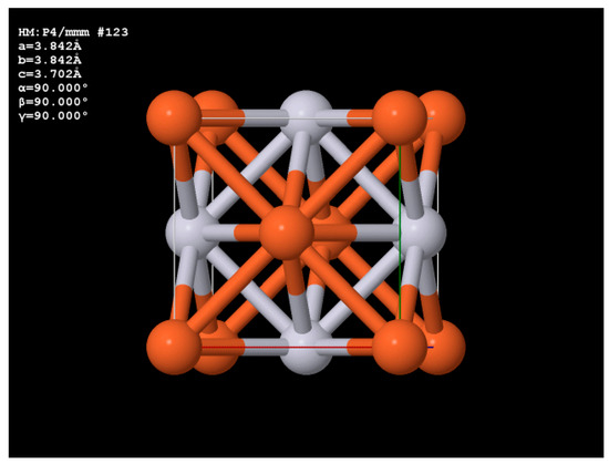 There has been a surge of interest in the investigation of size-dependent phenomena, as a response to the industry needs for highly performant nanodevices. The recent award of the Nobel Prize in Chemistry 2023 to the pioneers of the development of quantum dot fabrication [1] shows how important and real the study of size-dependent phenomena is at the nano scale. One phenomenon of particular interest is that of magnetic dots, or nanostructures that are suitable for spintronic applications as well as for heating dot magnetic recording (HDMR). The formation of hybrid nanostructures in spintronic devices has been recently investigated [2] as a response to specific needs, especially in nanodiagnostics, nanoelectronics and in adjacent fields where combined optical and magnetic response to various excitations is required for various types of sensing. With the advent of high accuracy and high-resolution fabrication technologies, such as lithography, coupling phenomena at the nanoscale for magnetic dots and for arrays of dots may become accessible. The integration of the magnetic and semiconductor components adds new capabilities to electronic devices [3]. While spin phenomena have long been investigated within the context of conventional ferromagnetic materials, the study of spin generation, relaxation, and spin–orbit coupling in non-magnetic materials has taken off only recently, with the advent of hybrid spintronics and it is here that many novel materials and architectures can find their greatest potential in both science and technology. Additionally, the heating dot magnetic recording (HDMR) principle, derived from heat-assisted magnetic recording (HAMR) has been shown to be a targeted application in instances where a key system is represented by FePt nanoclusters [4,5]. In this view, Mohan et al. [4] and Medwal et al. [5] have proposed the fabrication of self-stabilized FePt non-stoichiometric clusters by a chemical route, i.e., reduction using oleic acid and oleylamine. An annealing at 600 °C transformed these FePt colloidal nanoparticles into carbon-coated L10 FePt phase nanoclusters. As proposed by Seagate a number of years ago [6], the heated dot magnetic recording (HDMR) is a promising technology suitable for increasing the density of media used for magnetic recording to values of around 4 Tb/in2. It is indeed true that the heating dot magnetic recording technology needs arrays of magnetic dots that are periodically dispersed, non-interacting, well within the nanometer-size range, and that have a stable magnetic response and high uniaxial perpendicular magnetic anisotropy. While the chemical route described in [4,7] provides non-interacting, small nanoparticles, their carbonaceous coating can impede the recording processes due to the diminishing of the magnetic response. The lithographical route proposed in [6] has the advantage of providing regular disposal of these small nanoclusters. Here, the media is made of a continuously deposited FePt film and lithographical path is employed to provide and define regular arrays of periodically disposed magnetic dots which are subsequently heated to achieve the L10 FePt phase. It is to be noted that the L10 phase is considered as a high order tetragonal distortion of the FePt cubic phase where the unit cell consists of planes of only Fe atoms stacked over slabs of only Pt atoms as in Figure 1: