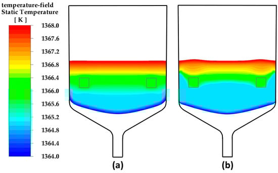 Consequently, to straighten the crystallization front, it is necessary to ensure the distribution of the heat of crystallization over the crucible due to the convective term in Equation (5); that is, to introduce a sufficient flow rate into the isothermal region.