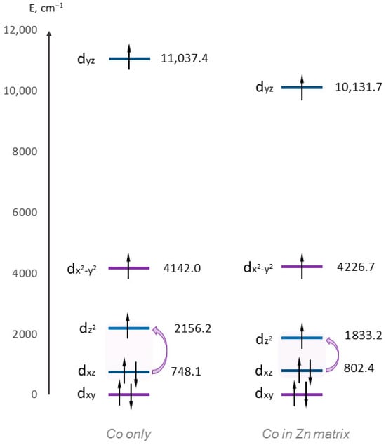 At the same time, it is possible to estimate the energies of the Kramers doublets (KDs) quite accurately, since they depend notably on the splitting of terms as the spherical symmetry decreases. Comparative analysis of KD energies (Table 2) indicates a significant change in the electronic structure of Co2+ ions upon Zn dilution of complex 1.
