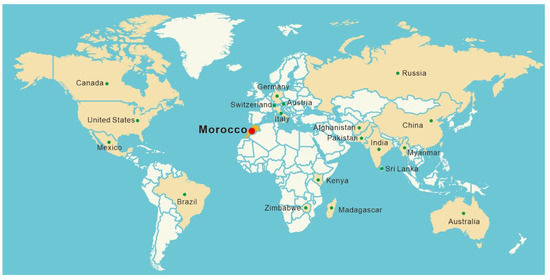 - Allouban, M.; Karaoui, B.; Mahmoudi, A.; Baïdder, L.; Hafid, A.; Goodenough, K.; Eddebbi, A. Petrographic and geochemical study of Jurassic-Cretaceous intrusive massifs (Gabbros-syenites) of the Eastern High Atlas, Morocco (Rich-Talsint axis). J. Afr. Earth Sci. 2021, 184, 104280. [Google Scholar] [CrossRef]