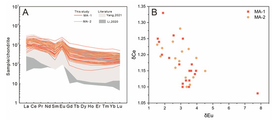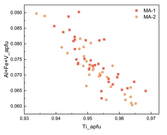 - Pan, L.C.; Hu, R.Z.; Bi, X.W.; Li, C.; Wang, X.S.; Zhu, J.J. Titanite major and trace element compositions as petrogenetic and metallogenic indicators of Mo ore deposits: Examples from four granite plutons in the southern Yidun arc, SW China. Am. Miner. 2018, 103, 1417–1434. [Google Scholar] [CrossRef]