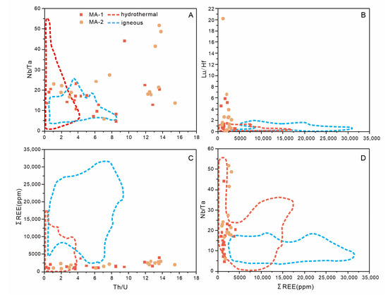 - Salvi, S.; Fontan, F.; Monchoux, P.; Williams-Jones, A.E.; Moine, B. Hydrothermal mobilization of high field strength elements in alkaline igneous systems: Evidence from the Tamazeght complex (Morocco). Econ. Geol. Bull. Soc. 2000, 95, 559–575. [Google Scholar] [CrossRef]