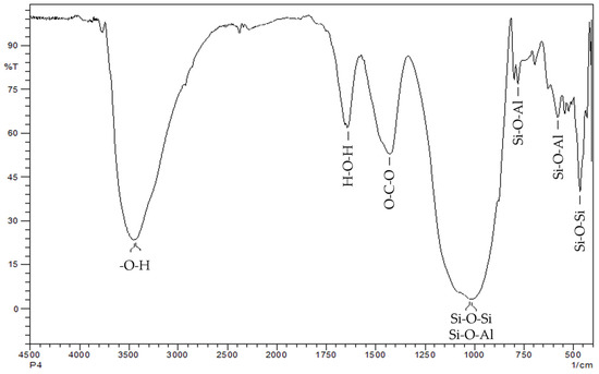 FTIR spectra of the strongest Class C fly ash–based geopolymer.