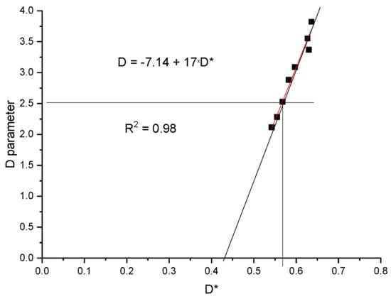 - The Poisson ratio related D* parameter scales with the D parameter: D = −7.14 + 17xD*.