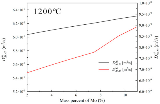 The diffusion coefficients of Al and Ni in the filler liquid phase at 1200 °C when adjusting the Mo content (based on the BNiZr-1 filler).