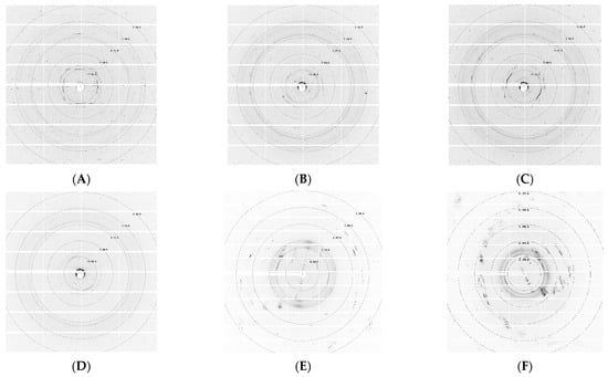 Synchrotron X-ray diffraction patterns of the human α4β2 nAChR from a single crystal. (A–F) Reflections resulting from the diffraction of a single crystal and another “crystal-like” sample harvested from the purified α4β2 nAChR solubilized using the detergent LFC-16. Here, diffractions were observed from both protein nature and a small molecule from one of the crystallization components of the reservoir solution. The diffracted samples were grown from a purified sample of α4β2 nAChR at 2.0 mg/mL, within the 70 mV sample board slot of the RMP@LMx V.1.5 device. The reservoir solution used was Pi-PEG #30 (50 mM ADA pH 6.8, 12.5% w/v PEG 1500, and 10% w/v PEG 1000). These diffractions were obtained at beamline 23-ID-D at Argonne National Laboratory—Advanced Photon Source. All diffraction patterns were managed through the Adxv software (Current version 1.9.15) (https://www.scripps.edu/tainer/arvai/adxv.html, accessed on 30 June 2019).