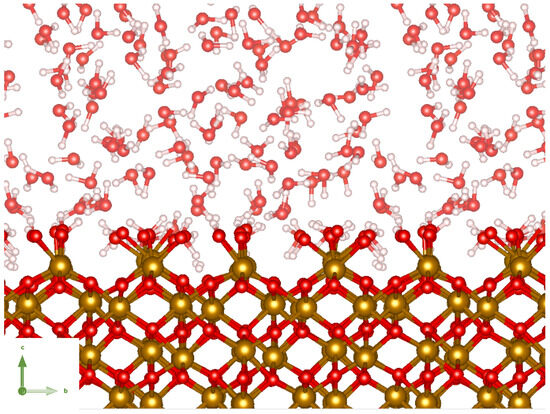 Given the limitations of experimental-methods, the water–metal oxide interfacial atomistic structure and reactivity have also been studied using computer simulations [20,21]. Empirical interatomic potential models, also known as “force fields”, have been widely used in the field of molecular simulations [22,23,24,25,26]. While interatomic potentials can handle large systems, they often compromise accuracy, especially in simulating interfaces between different materials [9,27]. Additionally, these models are better suited for covalent or weak bonding but fail to fully capture metal bonding.