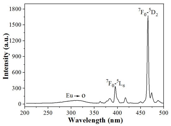 The excitation spectrum of Na5Zn2Gd(MoO4)6: Eu3+ sample monitored at λem = 614 nm.