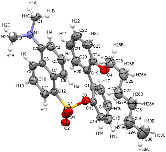 2.5.2. 2′-(Hexyloxy)-[1,1′-Biphenyl]-2-yl 5-(Dimethylamino)Naphthalene-1-Sulfonate, C30H33NO4S (KC1)