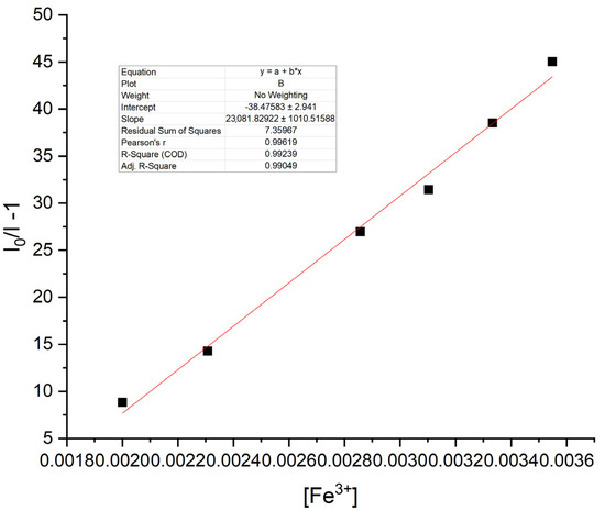 The plot graph of Stern–Volmer between KC1 and Fe3+ ions in DMSO:H2O (7:3 v/v).