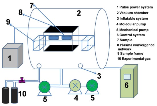 Figure 1 is a schematic diagram of the plasma-enhanced chemical vapor deposition equipment used in this experiment. This experimental equipment mainly consists of a pulse power supply system, a vacuum chamber, an exhaust system, an inflation system, and a control system.