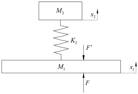In the locally resonant unit of the fundamental unit cell structure, the elongated cantilever beam serves as the primary region for elastic deformation, which determines the stiffness characteristics of the locally resonant unit. The oscillator, composed of the circular supplementary mass material and the substrate material, provides the necessary mass for the locally resonant unit. The fundamental unit cell structure can be simplified into an equivalent dynamic model, as illustrated in Figure 2.