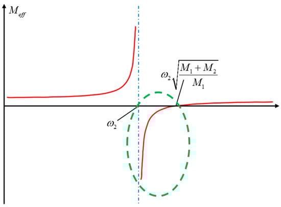 Based on Equation (6), the relationship between the equivalent mass of the unit cell structure and frequency is depicted in Figure 3.