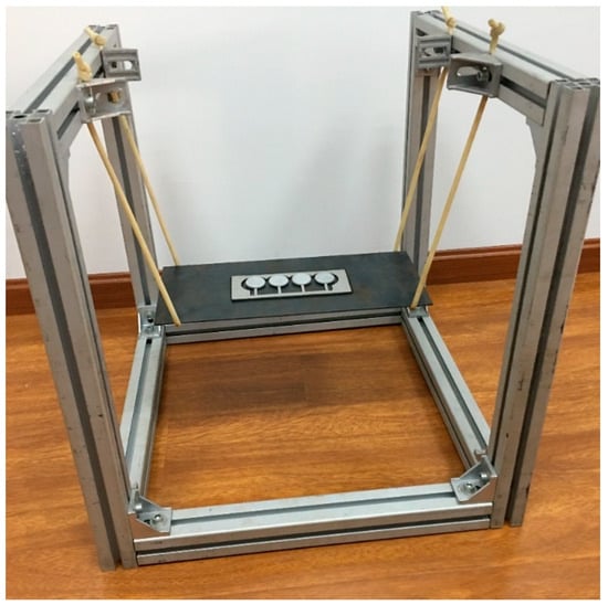 The bandgap of the locally resonant acoustic metamaterial plate was determined through theoretical calculations and analysis. To further validate the effectiveness of the low-frequency noise reduction bandgap of this acoustic metamaterial plate in practical applications, acoustic metamaterial plate samples were designed and fabricated based on the geometric parameters of the unit cell structure (with a bandgap of 46 to 60 Hz) described in Section 2.2. The number of locally resonant units can be adaptively designed based on the spatial requirements of the application context. During the design process, efforts were made to minimize the overall mass and external geometric dimensions of the acoustic metamaterial plate by arranging the locally resonant units in a compact configuration. The resulting low-frequency noise reduction acoustic metamaterial plate sample is presented in Figure 7.
