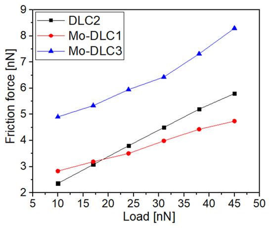- Zhairabany, H.; Dovydaitis, V.; Khaksar, H.; Vanags, E.; Gnecco, E.; Marcinauskas, L. Influence of Molybdenum Concentration on the Microstructure and Nanotribological Properties of Diamond-like Carbon Films. J. Mater. Sci. 2023, 58, 13437–13448. [Google Scholar] [CrossRef]