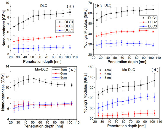 - Constantinou, M.; Pervolaraki, M.; Koutsokeras, L.; Prouskas, C.; Patsalas, P.; Kelires, P.; Giapintzakis, J.; Constantinides, G. Enhancing the Nanoscratch Resistance of Pulsed Laser Deposited DLC Films through Molybdenum-Doping. Surf. Coat. Technol. 2017, 330, 185–195. [Google Scholar] [CrossRef]