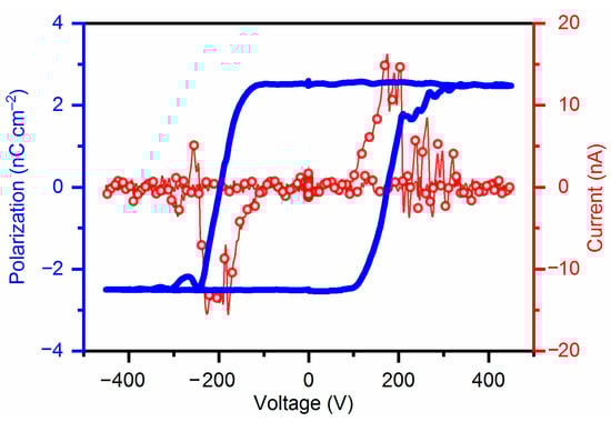 Ferroelectric tests based on the positive-up–negative-down method [,] at room temperature were measured at a frequency of 10 Hz and under a voltage of 450 V using a ferroelectric analyser TF1000 from AixACCT (Aachen, Germany).