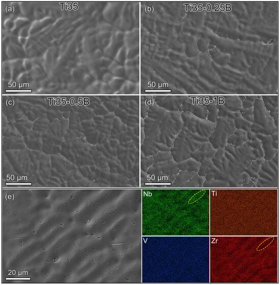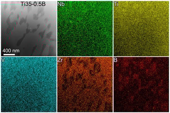 Wang, X.; Sun, M.; Liu, J.; Liu, X.; Jiang, W.; Wang, X.; Fang, Q. The Microstructural Evolution and Mechanical Properties of Boron-Doped Ti35Zr30V10Nb25 Refractory High-Entropy Alloy. Crystals 2024, 14, 1029. https://doi.org/10.3390/cryst14121029