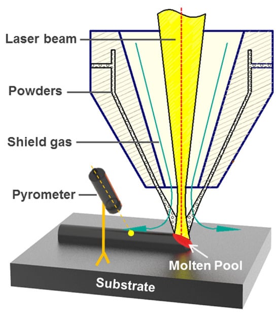 - Carcel, B.; Sampedro, J.; Perez, I.; Fernandez, E.; Ramos, J.A. Improved laser metal deposition (LMD) of nickel base superalloys by pyrometry process control. In Proceedings of the XVIII International Symposium on Gas Flow, Chemical Lasers, and High-Power Lasers, Sofia, Bulgaria, 30 August–3 September 2010; Dreischuh, T., Atanasov, P.A., Sabotinov, N.V., Eds.; SPIE: Bellingham, WA, USA, 2010; p. 775123. [Google Scholar]