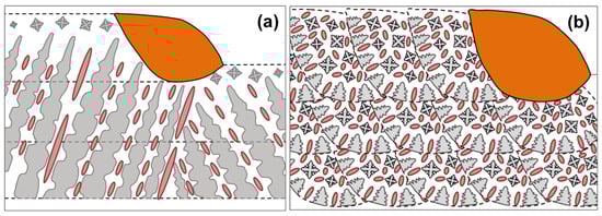 Schematic diagram of the microstructure evolution under two laser processing modes: (a) CW laser processing mode and (b) PW laser processing mode.