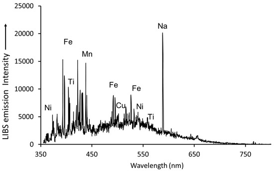 LIBS spectrum of the steel surface treated Ni containing 30 µm TiO2 particles.