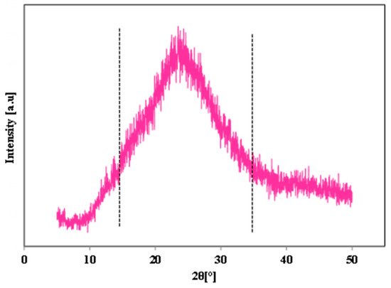 Based on the aforementioned behavioral characteristics observed in zeolite Y spheres resulting from various synthetic modifications, the sample aged for 7 days with TMAOH as the organic structure-directing agent was identified as the most crystalline sample. To further investigate the effect of a multi-step temperature program during the hydrothermal treatment, a new sample was prepared under the same synthesis conditions. However, the hydrothermal crystallization process was executed using a stepwise temperature program. Initially, the sample was heated from ambient temperature to 50 °C at a ramp rate of 3 °C/min and held at this temperature for 48 h. Subsequently, the temperature was increased to 100 °C at a ramp rate of 2 °C/min and maintained at this temperature for an additional 30 h in an oven under static air conditions. The subsequent procedures, including washing, drying, and calcination, were conducted as described in the previous synthesis trials (see Section 2.2). The results indicated that the multi-step heating approach during hydrothermal crystallization was more effective in achieving higher degrees of crystallinity (Figure 12). This enhancement is likely attributed to the reduced kinetics for the formation of competitive phases, thereby allowing for better control over the purity of the zeolite Y phase.