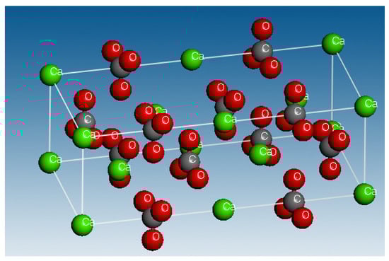 Spatial distribution of atoms in calcite single crystal packages.