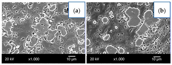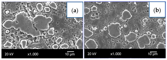 SEM images of (a) 10-5SE and (b) 10-E5SE samples.