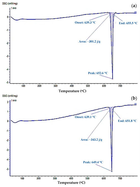 Figure 9 DSC analysis results of 10-5SE and 10-E5SE samples are given in (a) and (b), respectively. With the increase in Ni content in these samples, DSC curves did not show the transformation curve of Al3Ni intermetallic crystals. When the melting points and enthalpies of the samples were examined respectively, it was seen that there were small deviations between them.