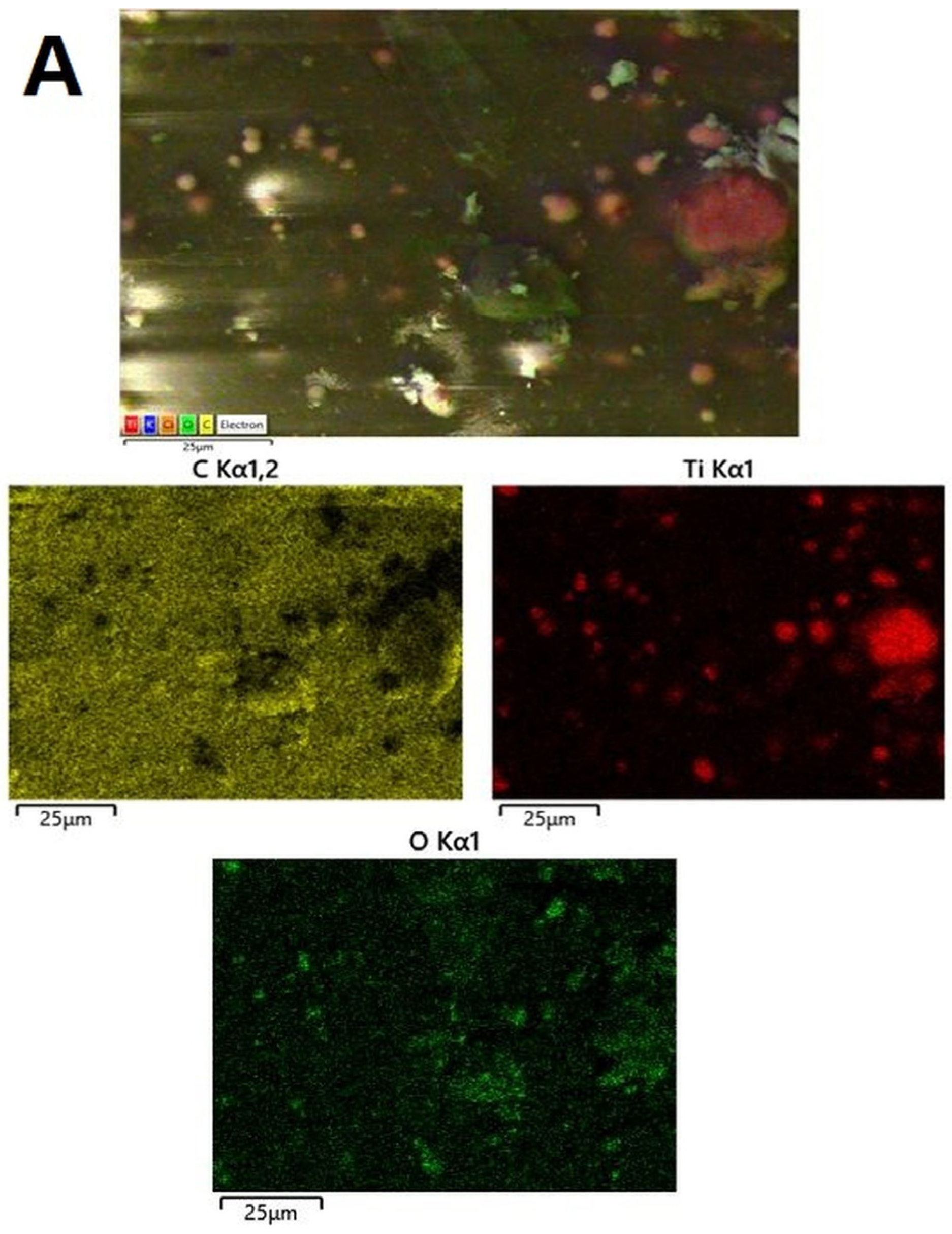 | Samples | C, at. % | O, at. % | Ti, at. % | N, at. % | P, at. % | Na, at. % |