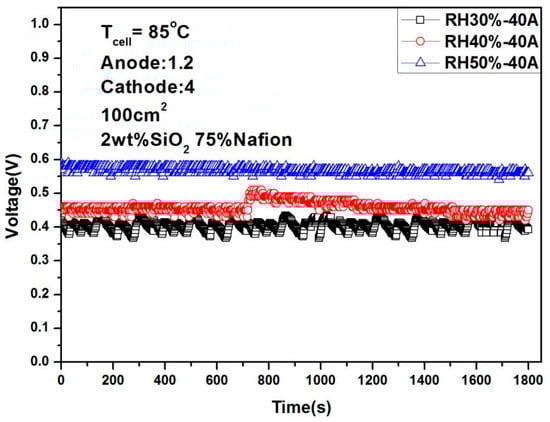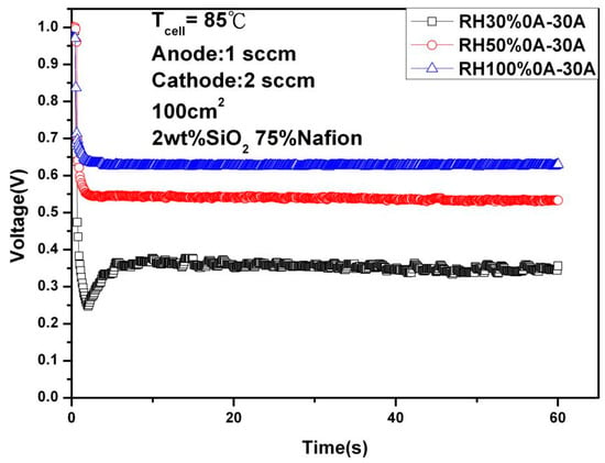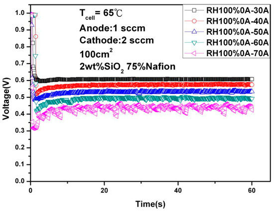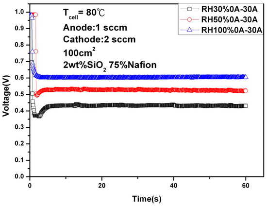 3.2. Voltage Stability of PEMFC Under Low Humidity