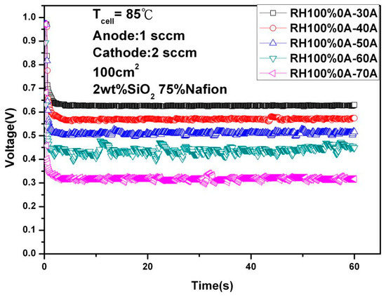 Performance Curve of PEMFC under Constant Current in Low Humidity at 80 °C.