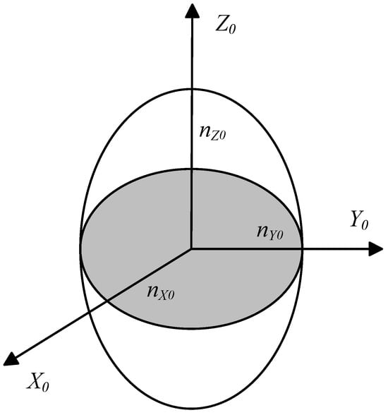 where X0, Y0, and Z0 represent the dielectric spindle of the crystal when there is no external electric field; , , and are the principal refractive indices in the X0, Y0, and Z0 directions, respectively. The refractive index ellipsoid, which describes the refractive index of a crystal, is shown in Figure 1 below.
