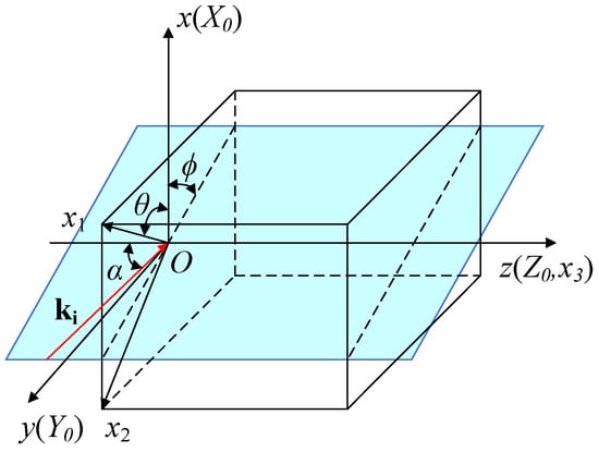 In Figure 2, O-xyz is the geometric coordinate system of the crystal, which is established by the crystal’s geometry. The x-axis, y-axis, and z-axis are along the crystal’s geometric edge and are perpendicular to each other.