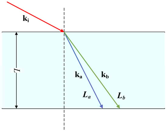 By bringing the refractive indices na and nb of the a- and b-light in LiNbO3 crystals into Equation (20), the refracted light wave vectors ka and kb can be obtained, as follows: