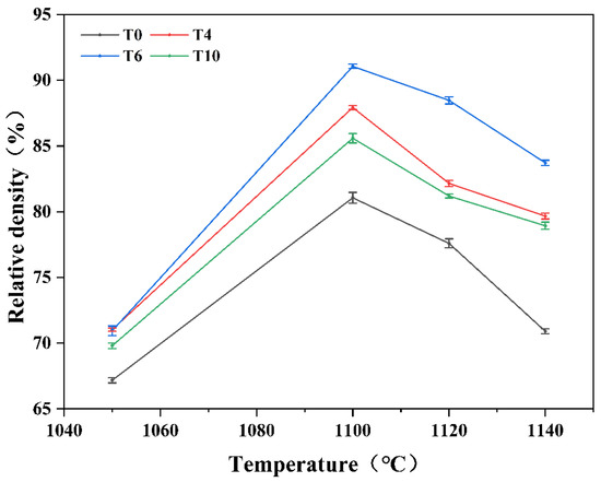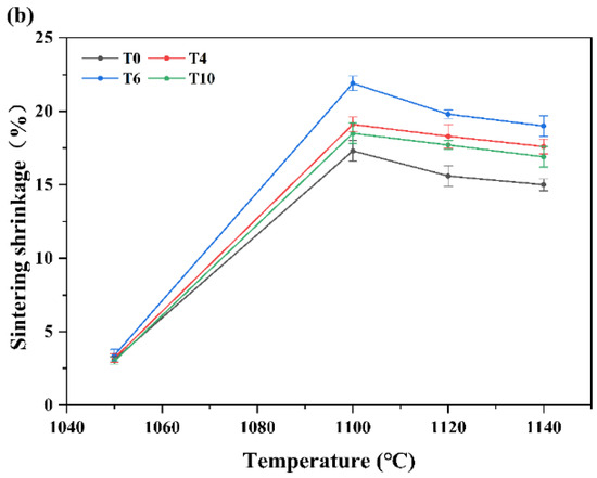 3.5. Sintering Shrinkage and Relative Density of CUG-1A–TiO2 Samples