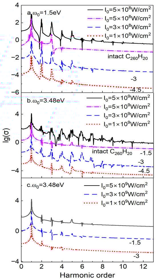 - Sun, J.; Guo, Z.; Liang, W. Harmonic generation of open-ended and capped carbon nanotubes investigated by time-dependent Hartree-Fock theory. Phys. Rev. B 2007, 75, 195438. [Google Scholar] [CrossRef]