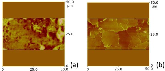 Despite the similar grain size distribution, the layers exhibit quite a different surface roughness, such as the Rq value of 95 nm in case of annealing at 250 C and of 28 nm in case of annealing at 400 C (Figure 5). Another important feature highlighted by the AFM analysis is the Cu grain boundary, which appears well defined in the surface height map measurement only in case of annealing at 400 C.