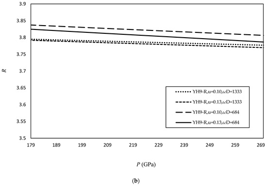 At this point, the variables depend on the volume ratio as , and . In order to establish a connection with the experimental data concerning hydride superconductors, it is preferable to present the curve depicting the relationship between these parameters and the external pressure. The Birch–Murnaghan equation of state [30,31,32,33] is employed to analyze the impact of external pressure on the expansion of a new state in terms of reduced volume . However, an experiment employing the Birch–Murnaghan equation of state for the yttrium hydride superconductor has not been located. Nonetheless, a comparable form of the equation is referenced in Ref. [7]. The data points were extracted from their respective curves and subsequently fitted using a polynomial equation. Following that, we could determine the relationship between external pressure and reduced volume .