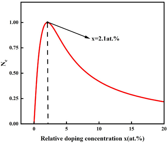 where denotes the error function [33]; then, Equation (11) is substituted into Equation (4), and finally combine Equations (8) and (9), the functional relationship between the population of the excited state and the relative doping concentration can be obtained: