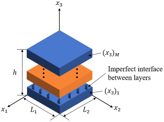 Geometry of a layered QC rectangular laminate with imperfect interfaces.