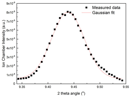 The DMM on the beamline BL17UM was homemade by the SSRF and Tongji University. The materials for the two strips included Ru/C and W/Si to cover the energy ranging within 10−18 keV and 18−25 keV, respectively [21]. Using the analysis of crystal Si(111) at the sample position, the energy resolution of the beam from the DMM was 0.775% at an energy of 12 keV. The equation was used to calculate the energy resolution (Figure 1).