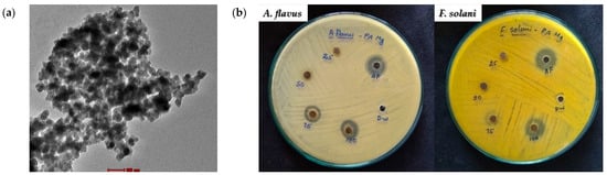 Apart from showcasing antibacterial effects, MgO nanoparticles have demonstrated significant antifungal capabilities against various pathogenic fungal strains (Figure 11). Fungi constitute natural pathogens as they present plenty of similarities with the host cell, inhibiting antifungal compounds’ growth [161]. Sierra-Fernandez and co-researchers [162] studied the antifungal activity of Zn-doped magnesium oxide nanoparticles synthesized through a facile sol-gel approach and compared it with that of pure ZnO and MgO nanoparticles. The as-mentioned nanoparticles presented enhanced antifungal efficiency compared to that of pure magnesium oxide or zinc oxide nanoparticles, restraining the growth of fungi Aspergillus niger, Penicillium oxalicum, Paraconiothyrium sp., and Pestalotiopsis maculans.