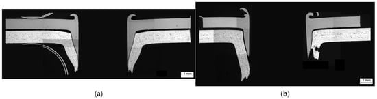 Metallographic cross-section through (a) DC-Al and (b) TL-Al joints.